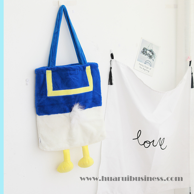 short fleece beer and fox drain plush bag, ophaalstring b...